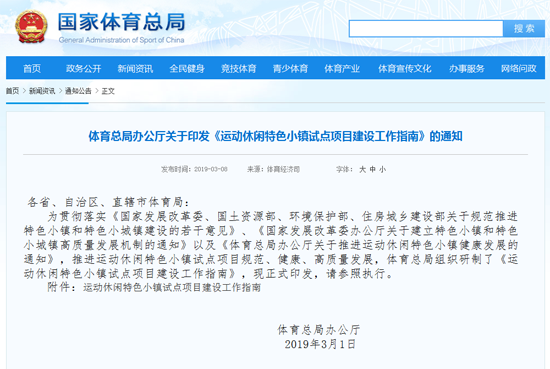 關于印發《運動休閑特色小鎮試點項目建設工作指南》的通知